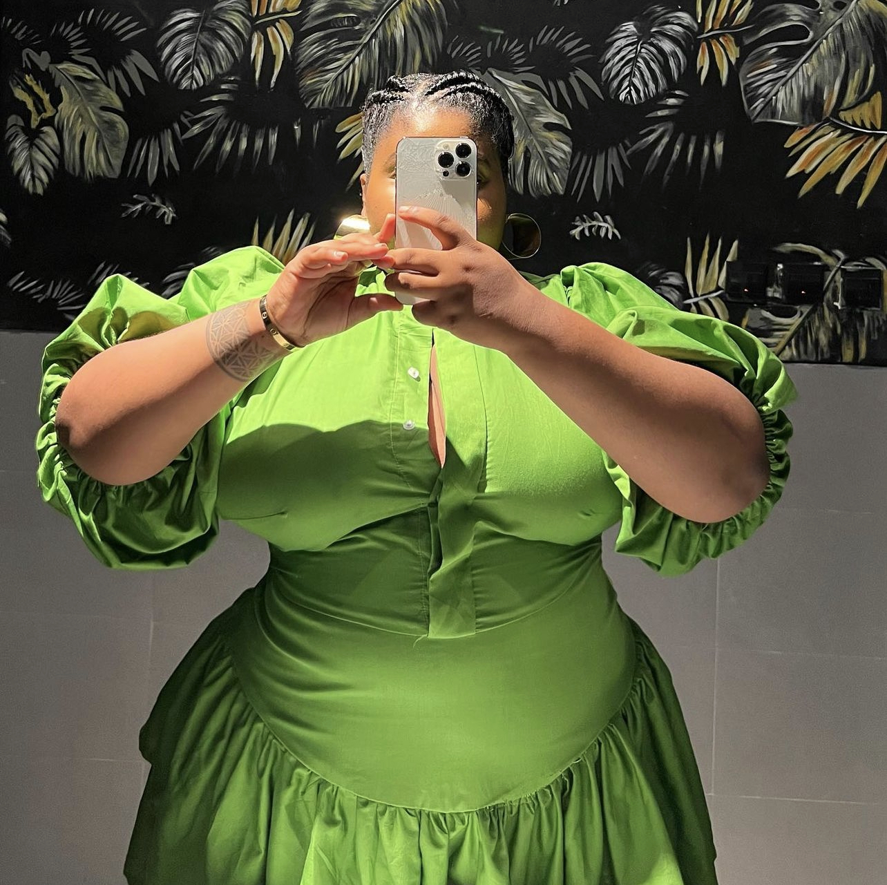 A dress that’s not afraid to show off. With its bold green color, flowy silhouette, and iconic African puff sleeves, you’ll be the center of attention wherever you go.